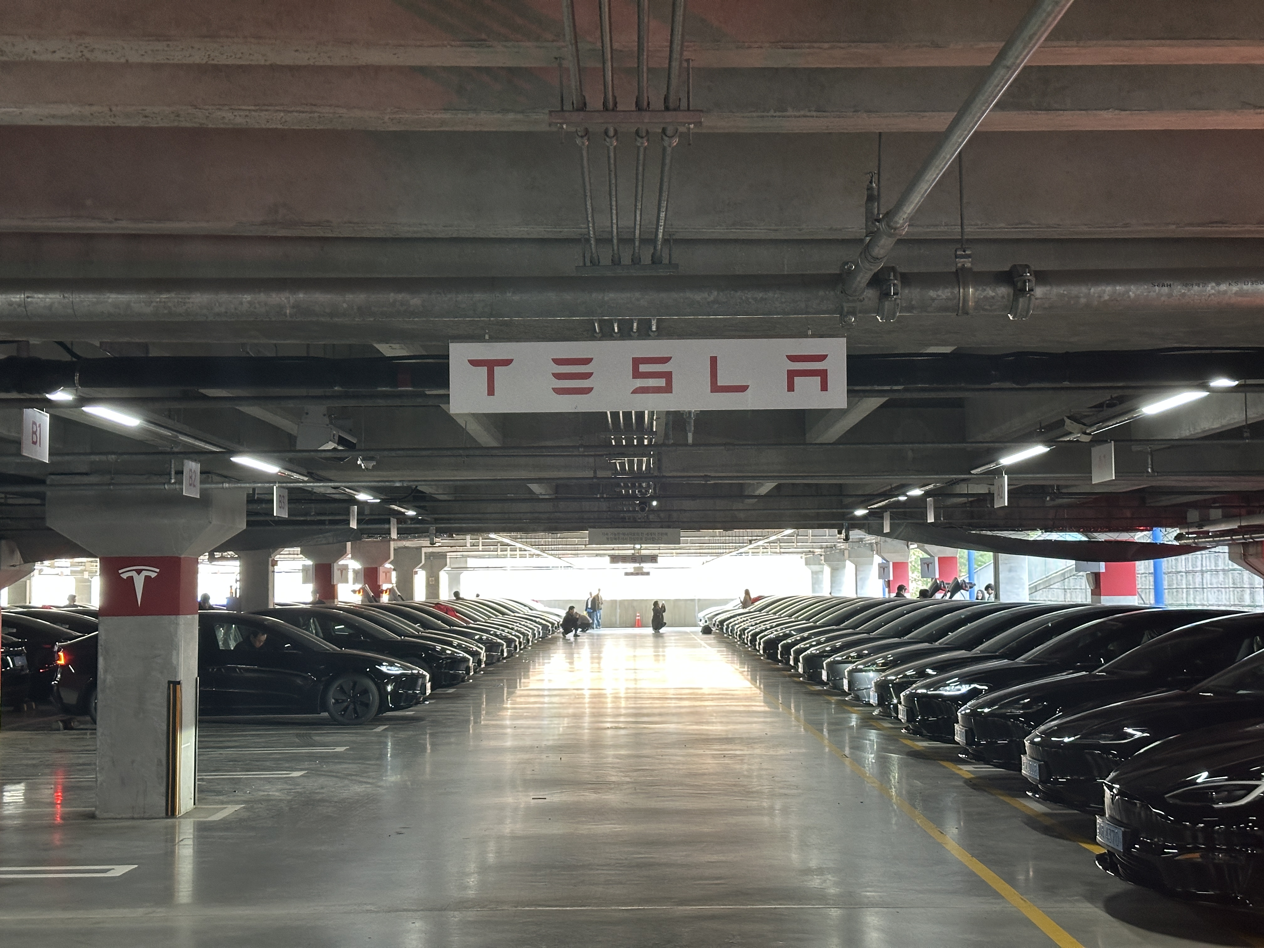 사람들이 주차장 어딘가로 걸어가면 따라가면 테슬라 딜리버레센터다ㅎㅎ